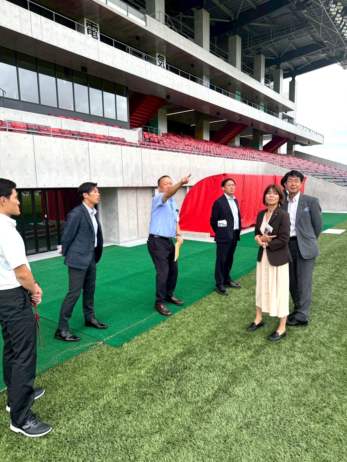 令和7年10月9日、長野市を訪問し、南長野運動公園内に整備された総合球技場「長野Uスタジアム(正式名称:南長野運動公園総合球技場)」の行政視察を行いました。