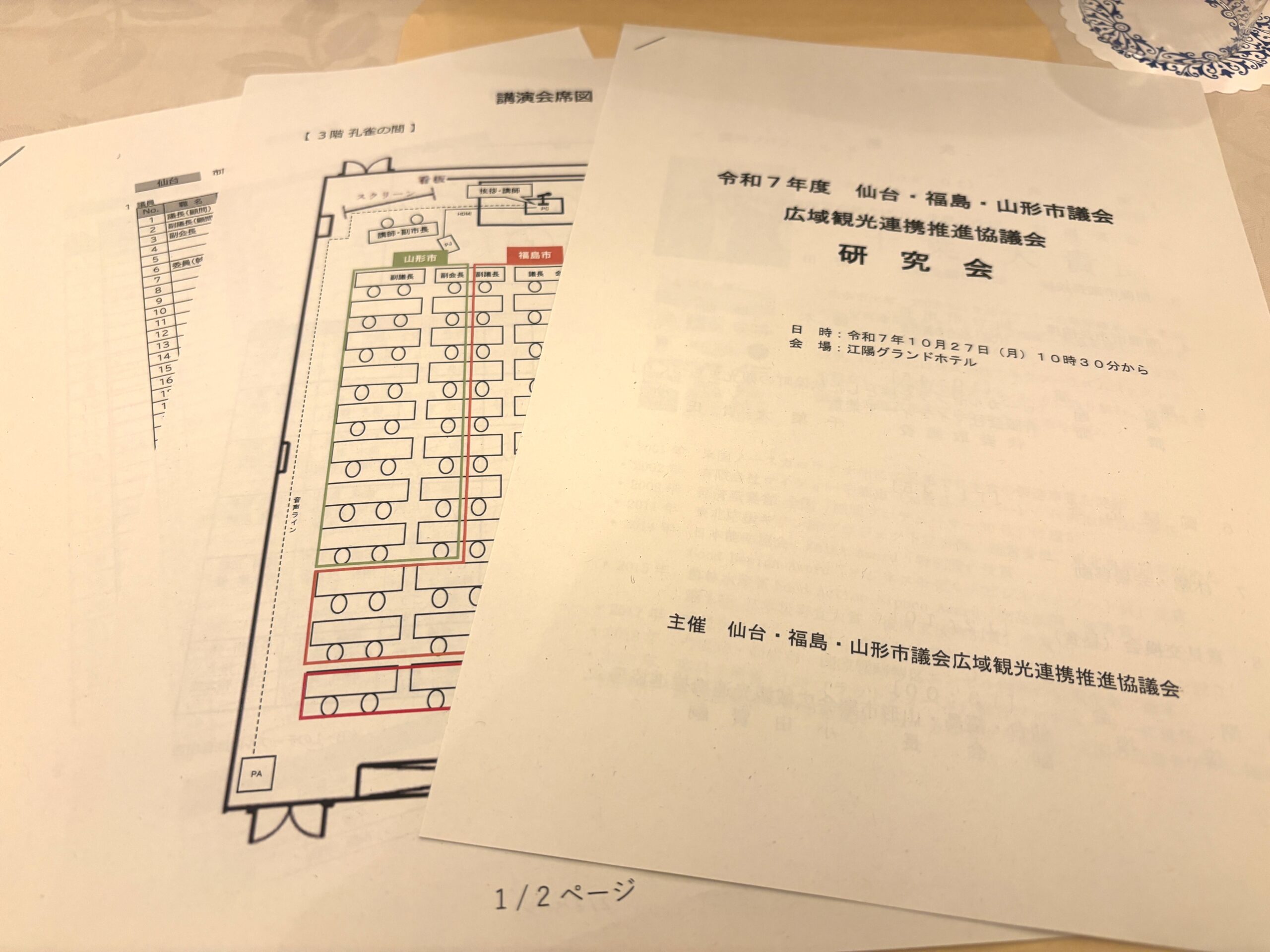 令和7年10月27日、仙台・福島・山形三市議会による「広域観光連携推進協議会 研究会」に出席しました。